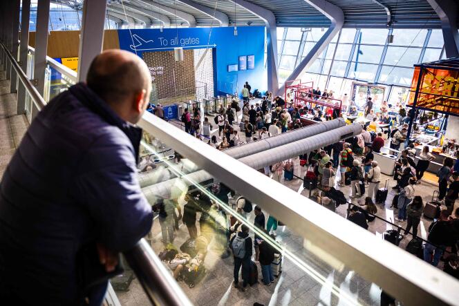Une panne informatique a touché l’aéroport régional et plusieurs services publics dont les garde-côtes et la police militaire aux Pays-Bas,à Eindhoven le 28 août 2024. ROB ENGELAAR / AFP Services gouvernementaux et municipaux,Chambre des députés,gendarmerie,gardes-côtes,centres de vaccination,avions cloués au sol durant plusieurs heures,jusque dans la soirée,à l’aéroport d’Eindhoven où des milliers de passagers étaient bloqués : les Pays-Bas ont connu une journée noire,mercredi 28 août,en raison d’une panne informatique qui a débuté dans la soirée de mardi et dont la cause n’est pas encore clairement identifiée. La police nationale a,elle,pu recourir à un plan B,impliquant l’usage de téléphones portables.