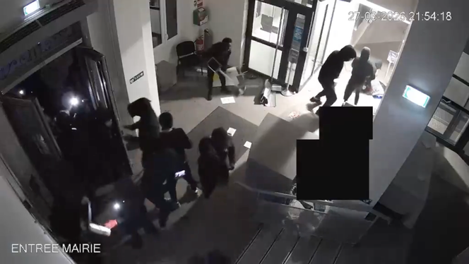 Sur deux extraits de vidéosurveillances,mises en ligne sur X par le ministre de la ville et du logement,Vincent Jeanbrun – par ailleurs ancien maire de la commune limitrophe de L’Haÿ-les-Roses –,une dizaine de personnes sont visibles devant,puis à l’intérieur de la mairie. L’une d’entre elles utilise un mortier d’artifice en direction de la porte d’entrée.